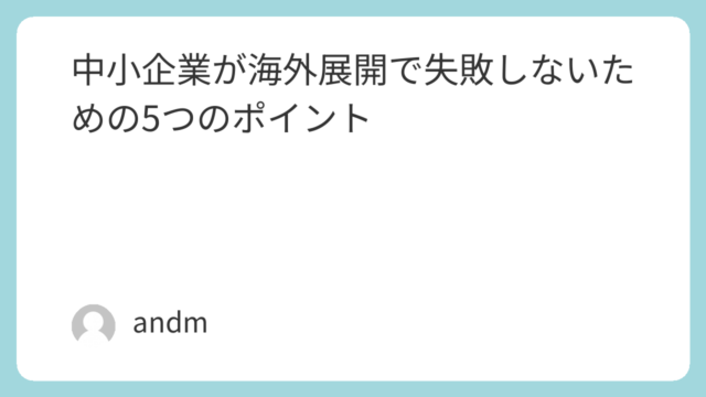 お役立ち情報 中小企業が海外展開で失敗しないための5つのポイント 中小企業が海外展開で失敗しないための5つのポイント日本の中小企業にとって、海外展開は新しい成長機会です。しかし、十分な準備や現地理解がないまま進出すると、コスト増大や契約トラブルなど思わぬ失敗を招くことがあります。ここでは、中小企業が海外展... お役立ち情報